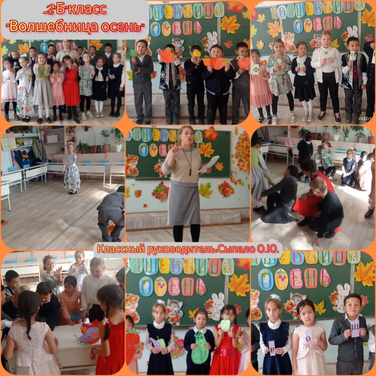 Түркістан облысы, Шардара қаласы Во 2 "Б"классе проводился классный час на тему"Волшебница осень".Цель:дать понятие о временных изменениях в природе.Были подобраны загадки и вопросы о осени.Играли в различные игры.В них принимали участие все ребята.