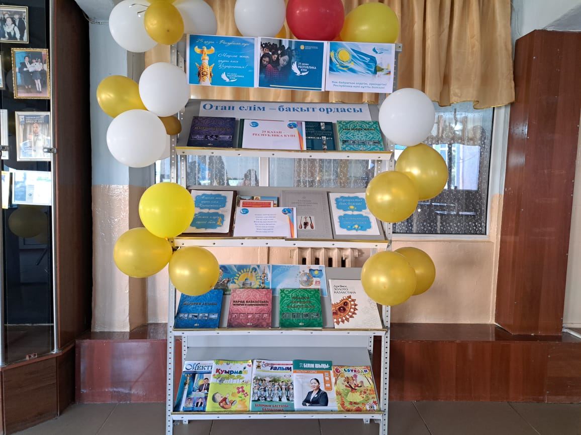 «Республика күні» тақырыбында Қазақстан туралы кітап және оқушылардың жасаған қолөнер бұйымдарының көрмесі ұйымдастырылды.
