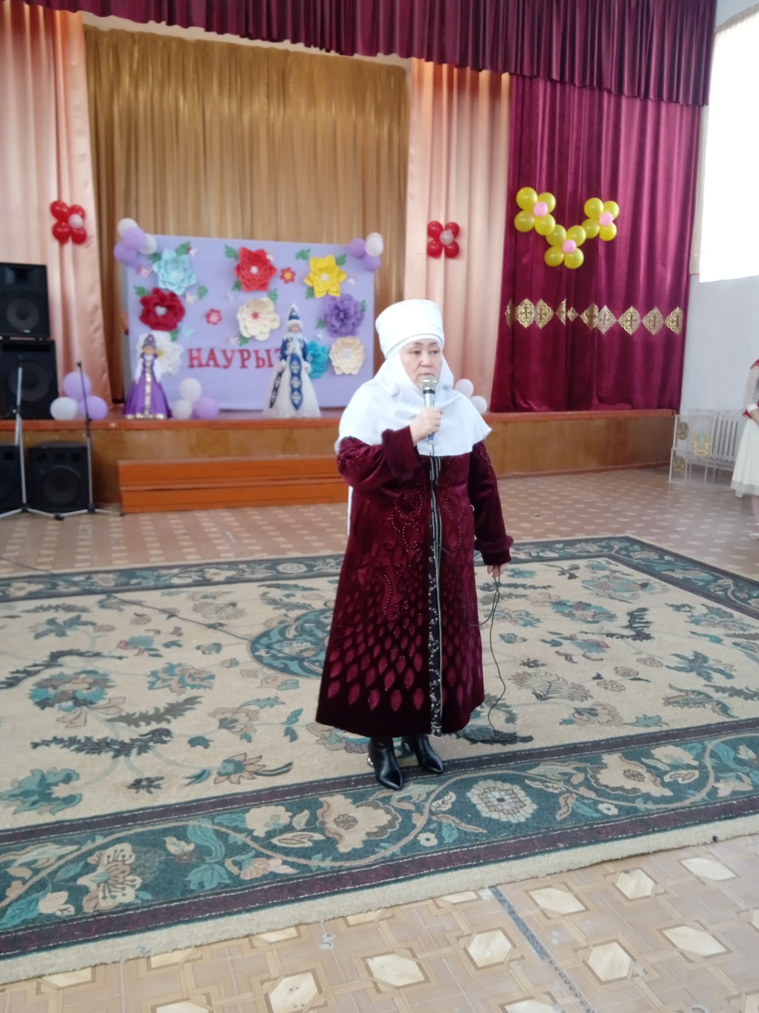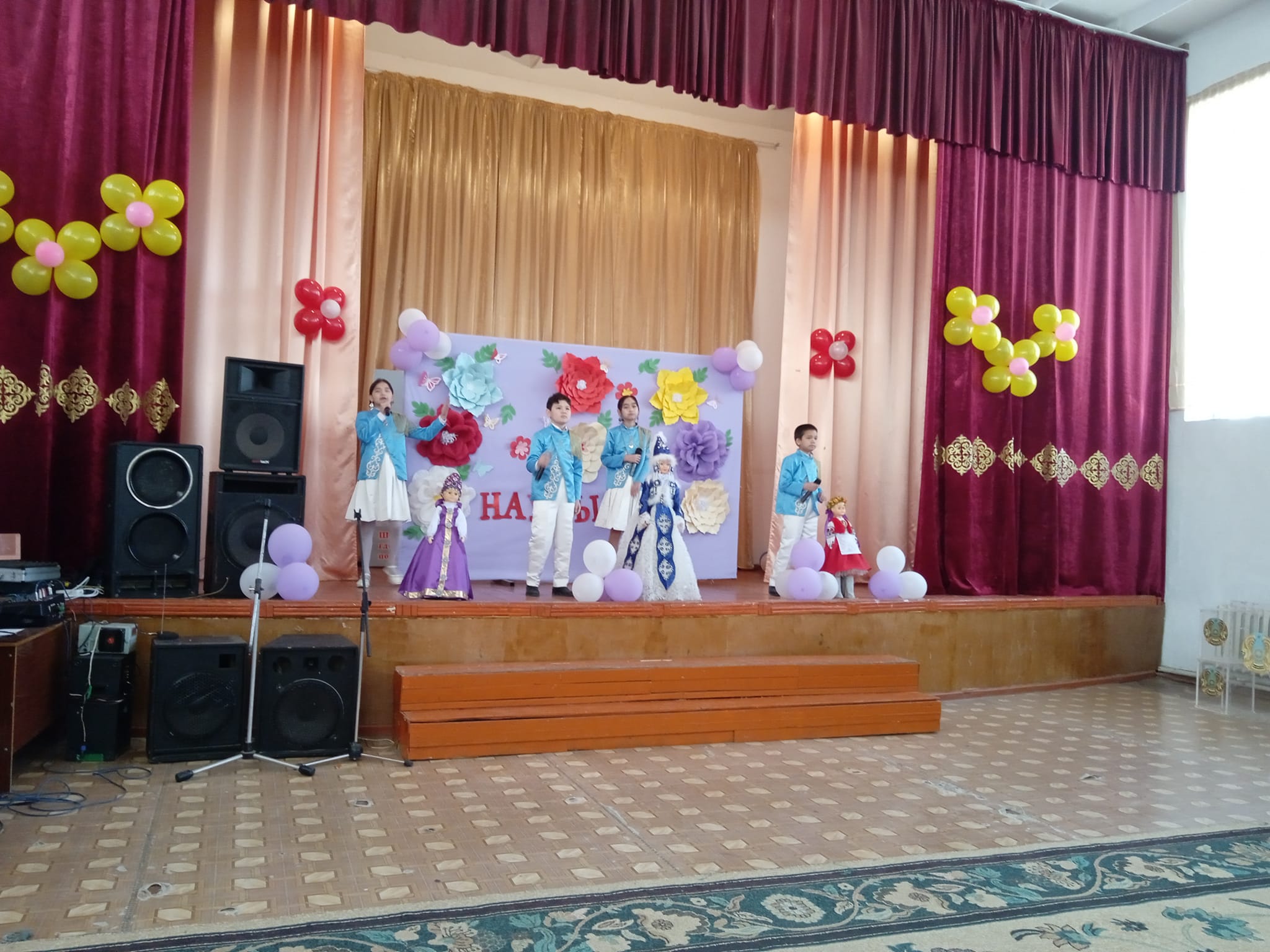Наурыз – көктем мерекесі. Наурыз – жыл басы. Бұл күн, яғни 22 наурыз көктемгі күн мен түннің теңелу күні – барлық Шығыс халықтарының мерекесі, халықтар ынтымақтастығы күні. Шығыс елдері үшін Наурыз – бірліктің, татулықтың, еңбектің, көктемнің, мейірімділіктің, бақыт мерекесі. Мектеп директоры Халмурзаева С. Б. Наурыз мерекесімен құттықтап салтанатты кешімізді ашып берді.