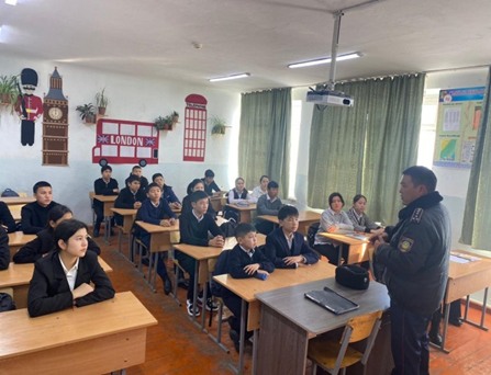 М. Горький атындағы жалпы орта мектебінде 05.12.2022ж кәмелетке толмағандар арасында құқық бұзушылықтың алдын алу мақсатында 2022 – 2023 оқу жылында жүргізілетін іс – шаралар жоспарына сәйкес "Балалар мен жасөспірімдерге қатысты құқық бұзушылықтың алдын алу және болдырмау" тақырыбында аудандық ішкі істер басқармасының полиция капитаны Дүйсенов Маратпен кездесу өткізілді.