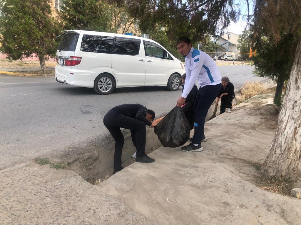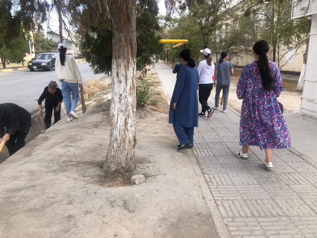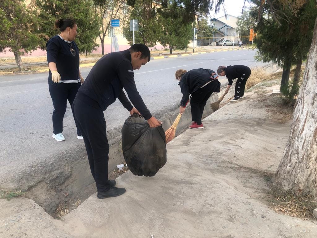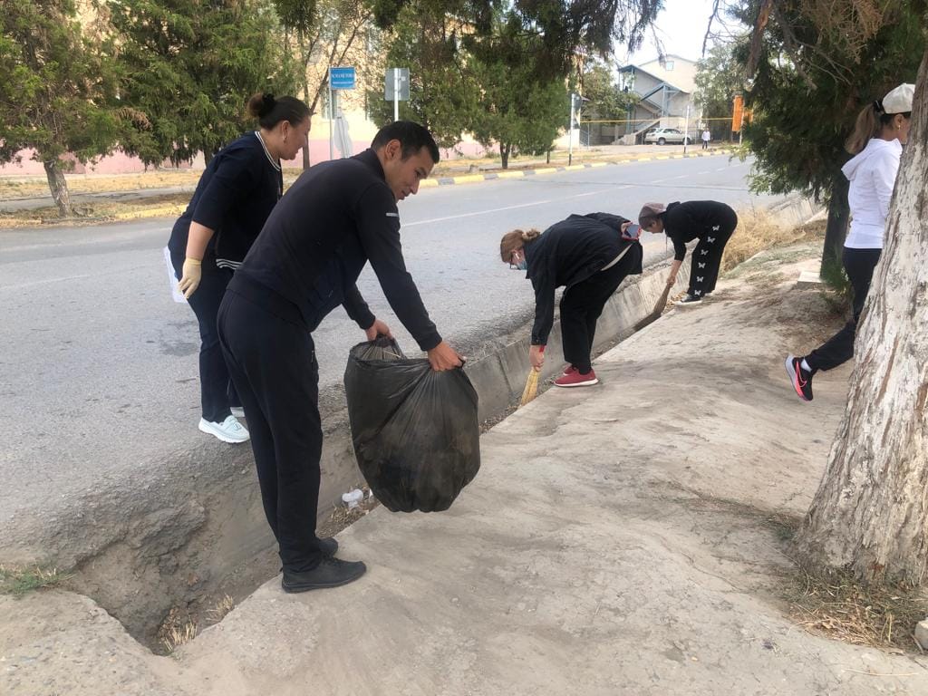 Коллектив средней школы имени М.Горького Туркестанской области города Шардара организовали генеральную уборку на территории своей школы.