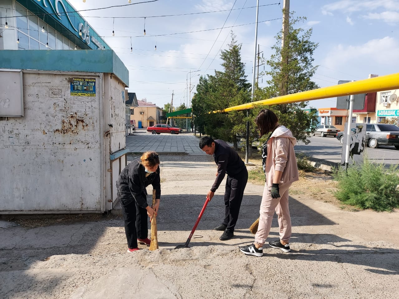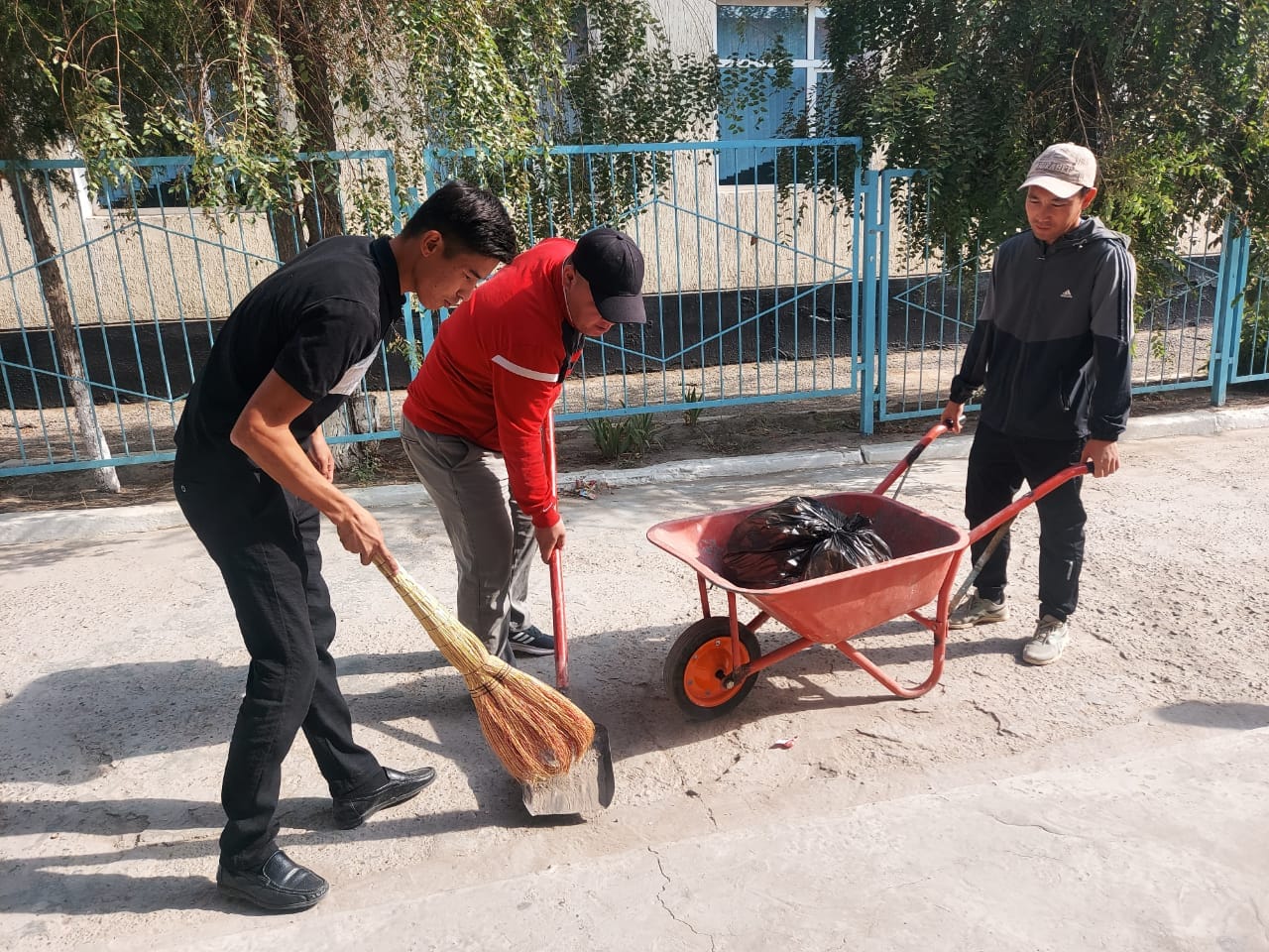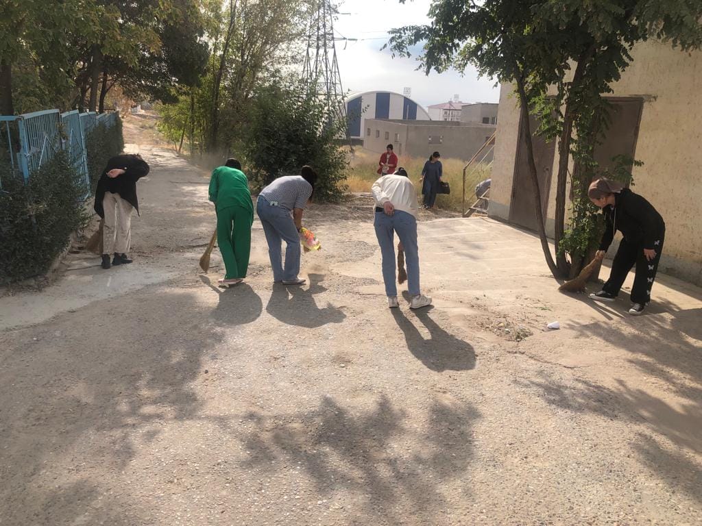 Коллектив средней школы имени М.Горького Туркестанской области города Шардара организовали генеральную уборку на территории своей школы.