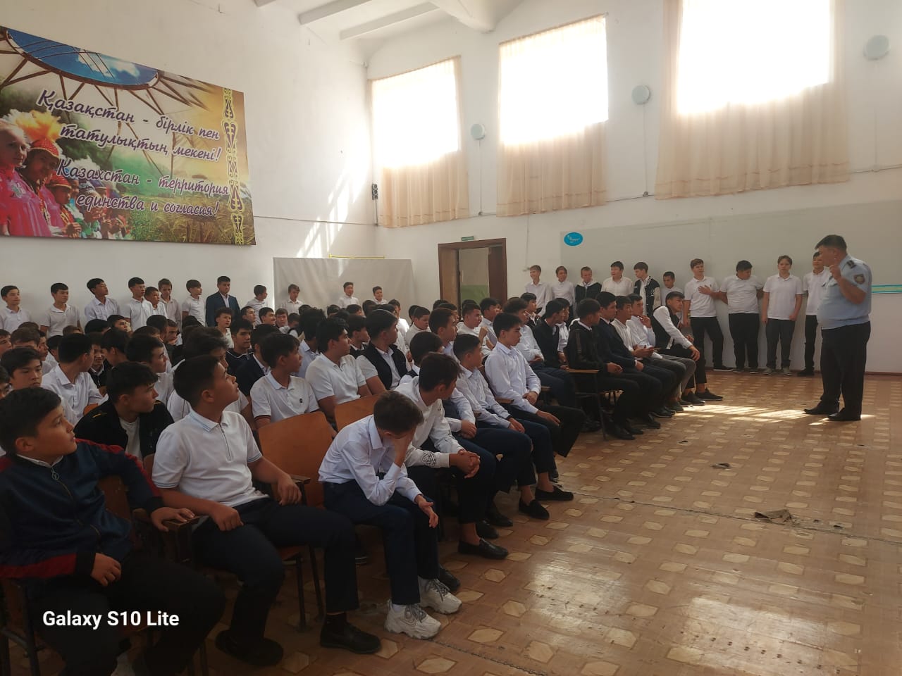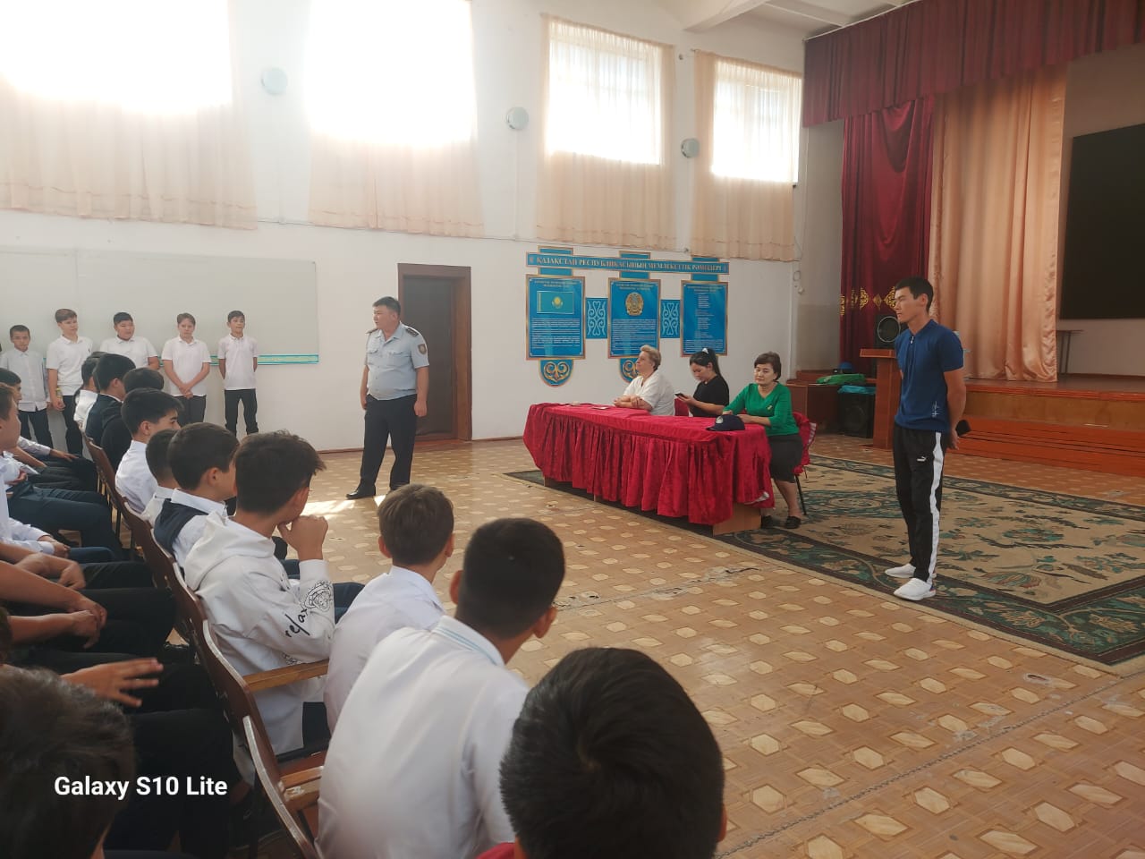 Жиналыс өткізілу мақсаты: Ер балалар арасында зиянды әдеттердің алдын алу, спорттық іс-шараларға қатыстыру арқылы салауатты өмір сүру салтын насихаттау, өскелең жас ұрпақтың бойында патриоттық білім мен өзін-өзі жетілдіруге деген құштарлық, беріктік, Отан тарихына, Тәуелсіз Қазақстанның бүгіні мен болашағына деген жауапкершілікті қалыптастыру, отбасында да, қоғамдық ортадағы тәрбиеде де ер баланы еңбек етуге, еңбексіз бос отыра алмайтындай сезімге тәрбиелеу. Жиналысқа қатысқандар: ДТІЖО - лары Садиярова М.А., Алимбекова Б.Б., Бердалиева Ж.А., Ұйымдастырушы педагог: Налыбаев Е.А. және Полиция капитаны Жанықұлов Көбейсін мырзамен біргелесіп өткізілген жиналыста балалардың түнгі мезгілде көшеді жүрмеуі, кәмелеттік жасқа толмағандардың көлік құралын жүргізбеуі, бұзақылық жасамау, зиянды заттардан өзін аулақ ұстауы, құқық бұзушылықты алдын алу жөніндегі барлық ескертулер мен хабарламалар ескертілді.