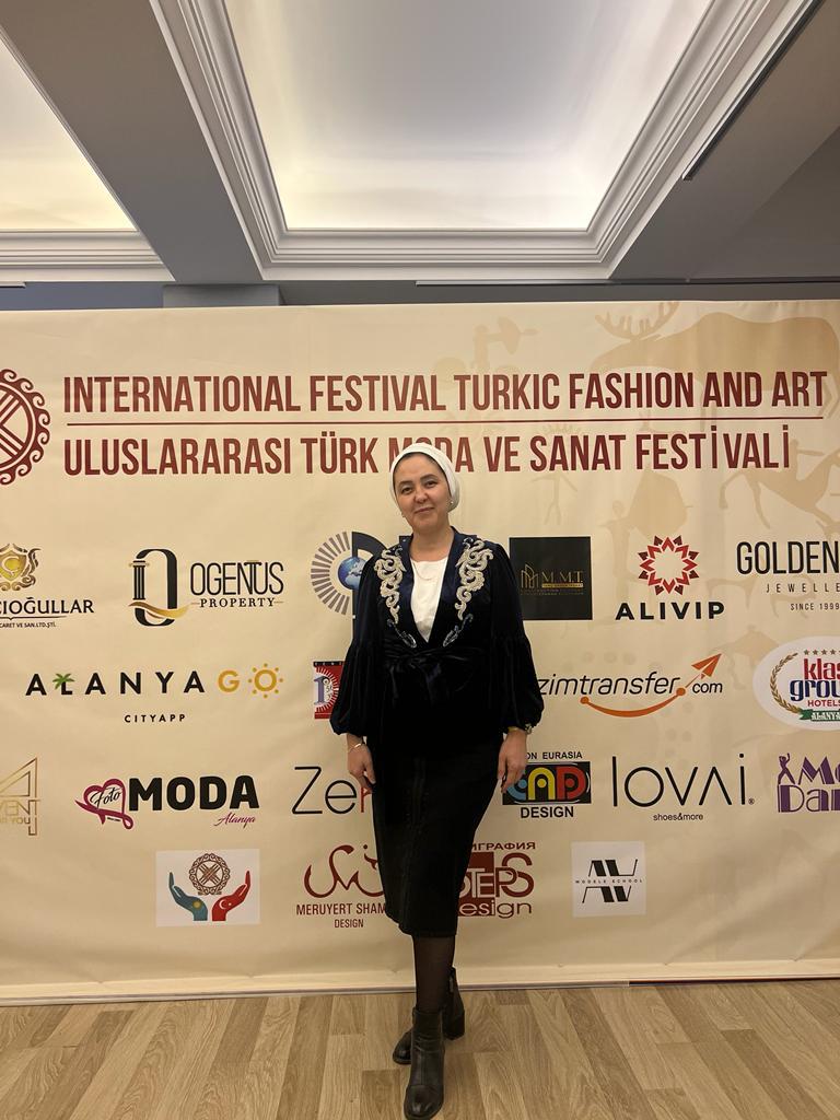 По приглашению оргкомитета преподаватель художественного труда общеобразовательной школы им. М.Горького г.Шардара Туркестанской области Алимбекова Жанар Усербаевна приняла участие в Международном Фестивале тюркской моды и дизайна , приуроченный к столетию Турецкой Республики, который проходил в городе Алания, в Турции. На фестивале из Казахстана участвовали известные дизайнеры и ремесленники под руководством президента “Союза Этнодизайнеров Казахстана” Жапаровой Салтанат Аминовны. Фестиваль открывали мэр города Алания господин Адэм Мурат Юджель и консул Казахстана в Турции Мурат мырза. На фестивале свои работы представили мастера и дизайнеры таких стран , как Казахстан, Кыргызстан, Азербайджан, Турция, Башкирия, Якутия. Фестиваль был организован известным казахстанским дизайнером Меруерт Кылыш.