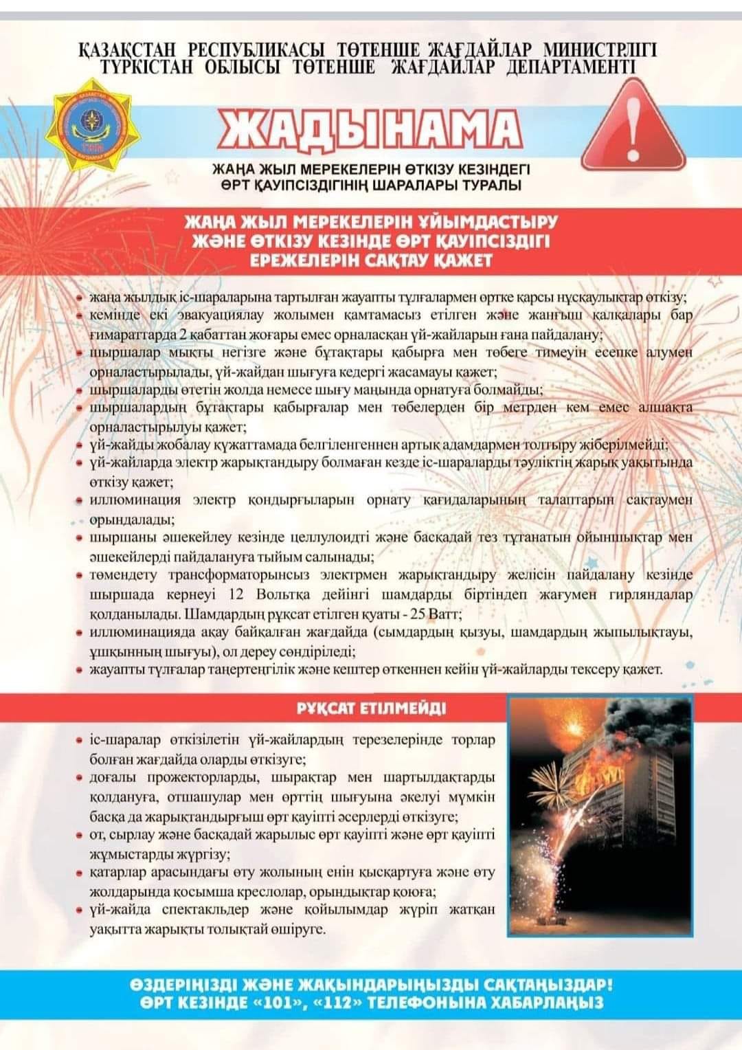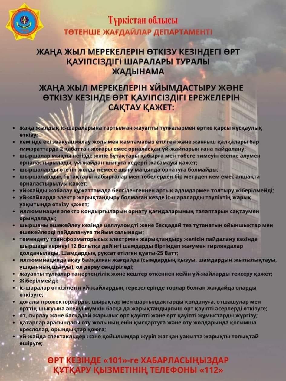 Түркістан облысы, Шардара аудандық білім бөліміне қарасты М.Горький атындағы жалпы білім беретін мектеп"- базасында каникул кезінде оқушылардың бос уақытын тиімді өткізу және жеке тұлғалық қасиеттерін дамыту мақсатында 2023 жылдың 29 желтоқсаны және 2024 жылдың 7 қаңтар аралығында «Біртұтас тәрбие» бағдарламасы аясында іс - шара жоспары құрылып бекітіліп, жоспар бойынша бүгін жаңа жылдық мейрам күндері қоғамдық қауіпсіздікті қамтамасыз ету мақсатында «Қауіпсіздік негіздері» пиротехникалық құралдар пайдалану кезінде қауіпсіздік техникасы бойынша алдын - алу түсіндірме жұмыстары жүргізіл.