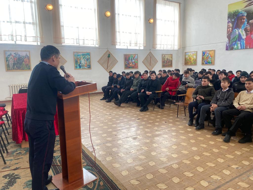 Құқық бұзушылықтың алдын алу мақсатында мектебімізде 8-11 сынып оқушылар аралығында Мектеп инспекторы Ибадуллаев Ш- пен мектептің ДТІЖО-лары Садиярова М.А, Алимбекова Б, Бердалиева Ж-дың қатысуымен оқушылар арасында жеңіл авто көлікті айдамау, кешкі мезгілде заңды өкілдерінсіз көшеде, кафелерде, тойханаларда жүрулеріне, жұмыс жасамауларына тиым салынғандығы туралы жете түсіндіру жұмысы жүргізілді.