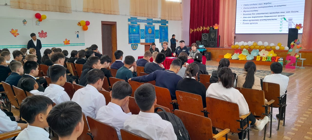 Түркістан облысы, Шардара аудандық білім бөліміне қарасты ,М.Горький атындағы жалпы білім беру мектебінде 10 - 11 сынып ұл бала, қыз балаларымен жиналыс өткізілді. Мақсаты: Қоғам тәрбиесіне байланысты көзқарастарын дұрыс қалыптастыра отырып, болашақта ұрпақ қамын, ұлт тағдырын ойлайтын қоғамның мүшесі болуларына жағдай жасау, ерте жүктіліктің алдын алу мақсатында түсініктеме беру. Ұрпақ тәрбиесіне байланысты ата - бабалар ілімдері туралы түсініктерін қалыптастыру. Отбасын құру мен бала тәрбиесіне байланысты жауапкершіліктерін арттыру. Ұл бала қыз балалардың сабаққа қатысып, мектеп ережелерін сақтап мектеп формасы, сабаққа кешікпеуі жайында айтылды.