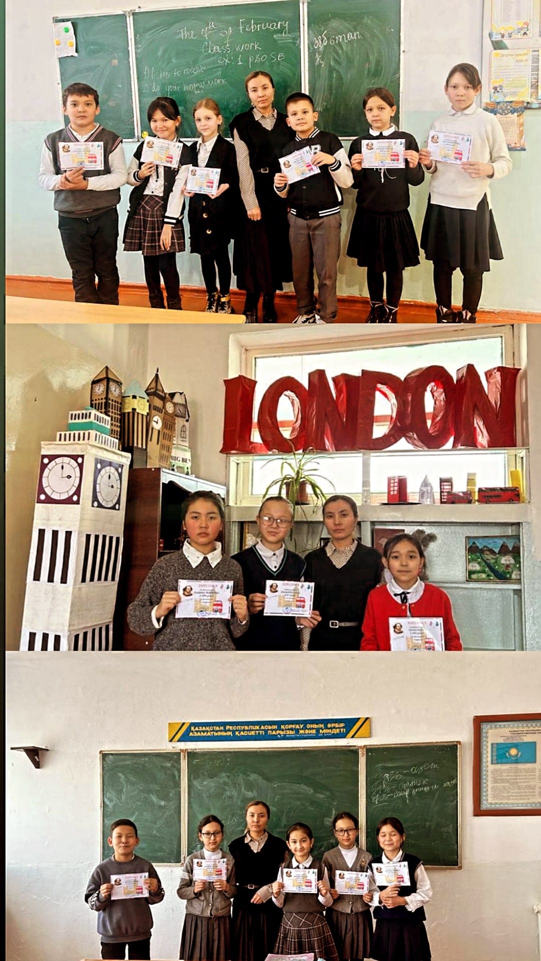 Қол өнер көрмесіне қатысып өз шеберліктерін танытқан оқушылар мақтау қағаздарымен марапатталды, солардың ішінде 5"ә" сынып оқушылары Даут Інжу, Оразбай Сая, Жалғасбай Нұрай, 5"д" сынып оқушылары Адразақ Заңғар, Абай Каусар, Аманбай Мерей, Есенай Інжу, Жумадулла Әдемі, 5"г" сынып оқушылары Өмірбек Аяулым, Ұзақбай Арайлым, Ұзақбай Аяулым, Мырзатай Ақарыс және тағыда басқа оқушылар өздерінің жаңа қырымен танылып ерекше көзге түсті.