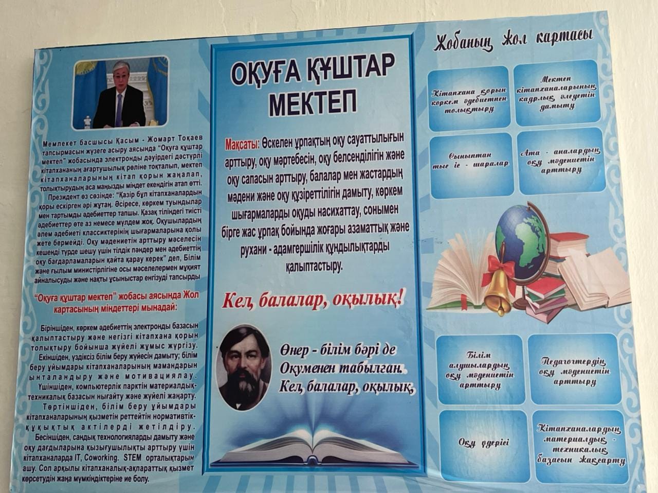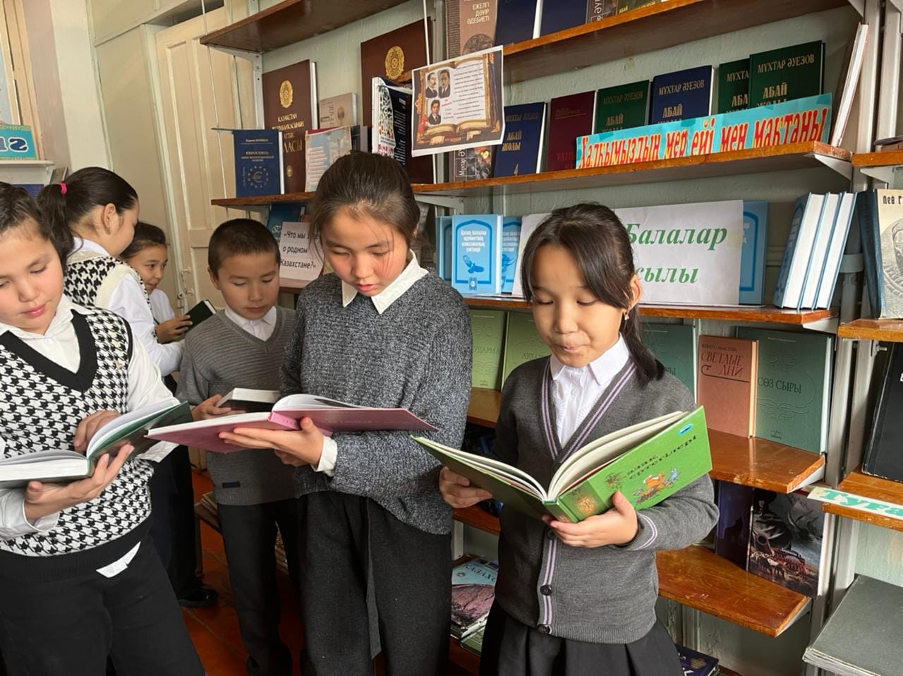 Түркістан облысы Шардара каласы М.Горький атындағы жалпы орта мектеп кітапханасында Оқуға қуштар мектеп жобасы бойынша Ыбырай Алтынсариннің Бай баласы мен жарлы баласы шығармасынан көрініс сабағы ұйымдастырылды.