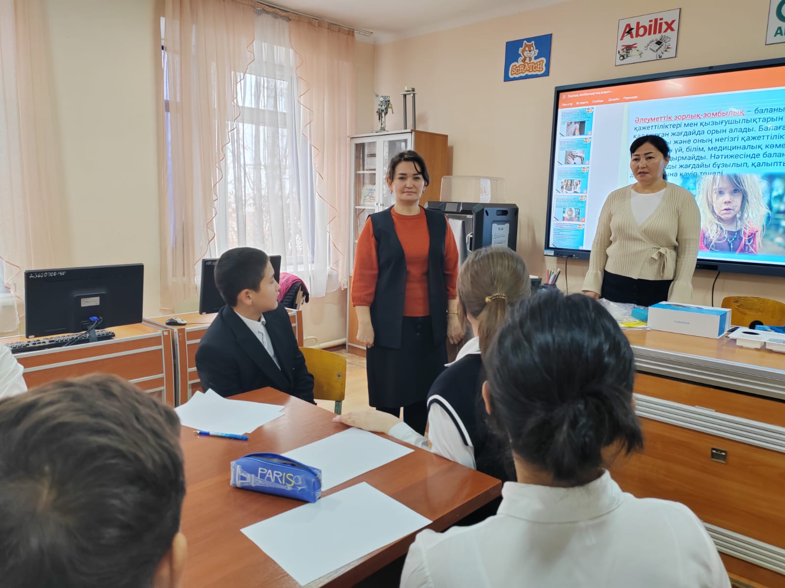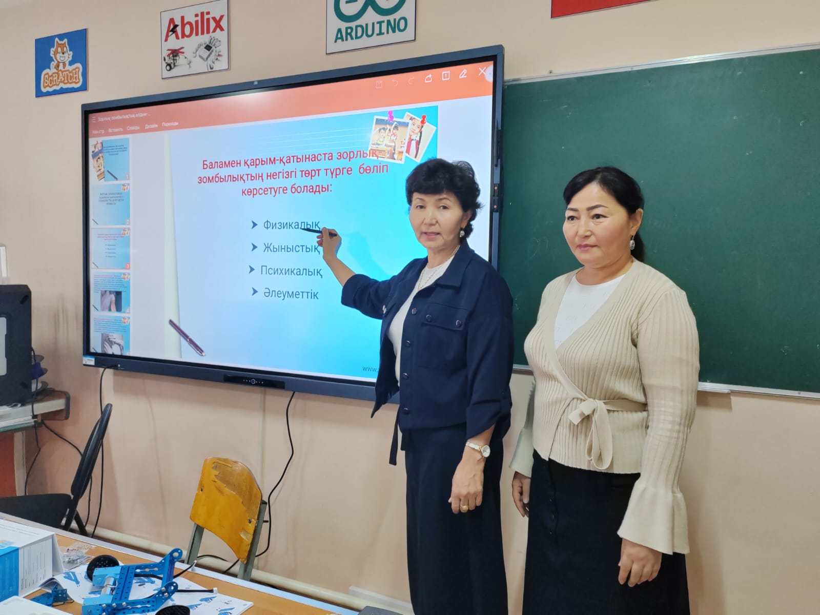Қазақстан аумағында 25 қараша мен 10 желтоқсан аралығында «Зорлық-зомбылықсыз 16 күн» республикалық акциясының аясында Шардара аудандық білім бөлімінің «Зорлық-зомбылыққа қарсы 16 күн белсенділік» науқанын 24 қараша -10 желтоқсан аралығында өткізілетін іс-шара жоспарына сәйкес, 30.11.2023ж Түркістан облысы Шардара аудандық білім бөліміне қарасты М.Горький атындағы жалпы білім беретін мектепте 8-сынып оқушыларымен зорлық-зомбылықтың алдын алу бойынша мектеп педагог-психологтары Ахметова Х.М, Тәңірберген Л.Қ және мектептің әлеуметтік педагогтары Бегалиева Р.Т, Тағайханова А.Б. қатысуымен «Зорлық-зомбылықсыз балалық шақ» тақырыбында психологиялық тренинг өткізілді. Тренинг барысында оқушыларға зорлық-зомбылықтың түрлері таныстырылды және оқушылармен қызықты жаттығулар жасалып, ақпараттық түсіндіру жұмыстары жүргізілді.
